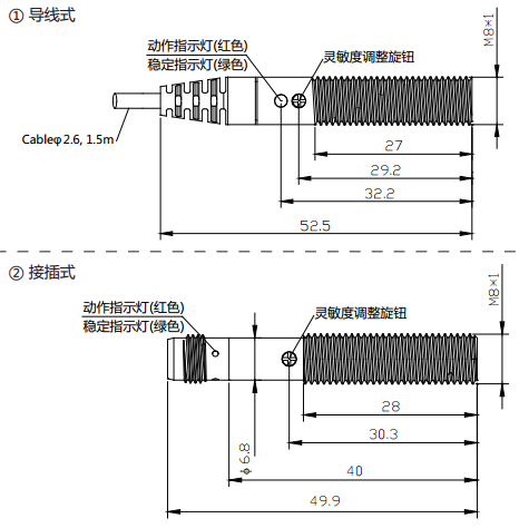 M5小柱形漫反射光电开关
