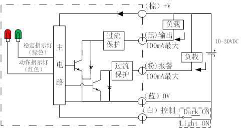 外壳加厚,30mm槽距,最高响应可达20us,最高检测精度可达0.1mm,动作指示,稳定指示,可用于工具断裂检测,齿轮测速,标签检测等运用,亮动或暗动灵活切换满足不同动作需求。默认NPN。