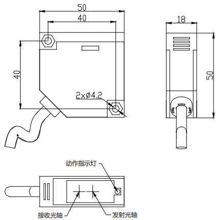 内置型放大器,调制发射,全信道锁相,抗干扰强 ,灵敏度可调、亮动/暗动 可设置 ,双指示灯(动作/稳定指示) 电源反接保护、输出逆接保护、输出过载保护。默认NPN。