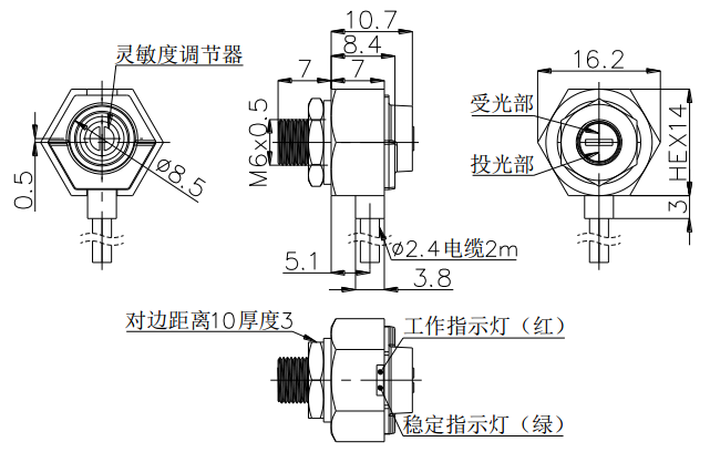 M5小柱形漫反射光电开关